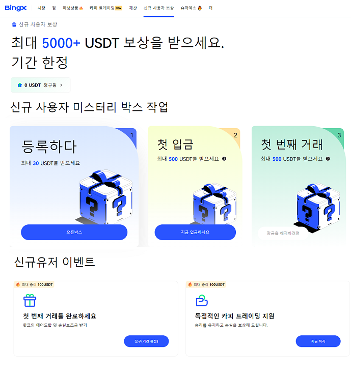 빙엑스 BingX 거래소에서 최대 5000 USDT 보상을 받아보세요 !